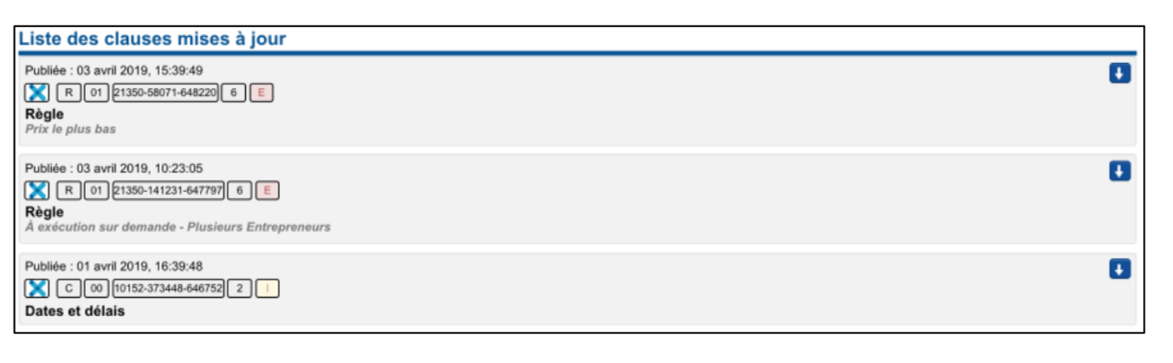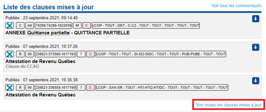 jour`` dans l’onglet ``Accueil``. Cette section affiche les 3 dernières clauses