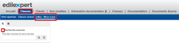 jour » de l’onglet « Clauses ». Vous pourrez alors y faire des recherches