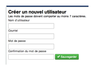 Vous accédez ainsi à l’écran de création d’utilisateurs. Pour créer un nouvel utilisateur, vous devez renseigner les champs suivants :